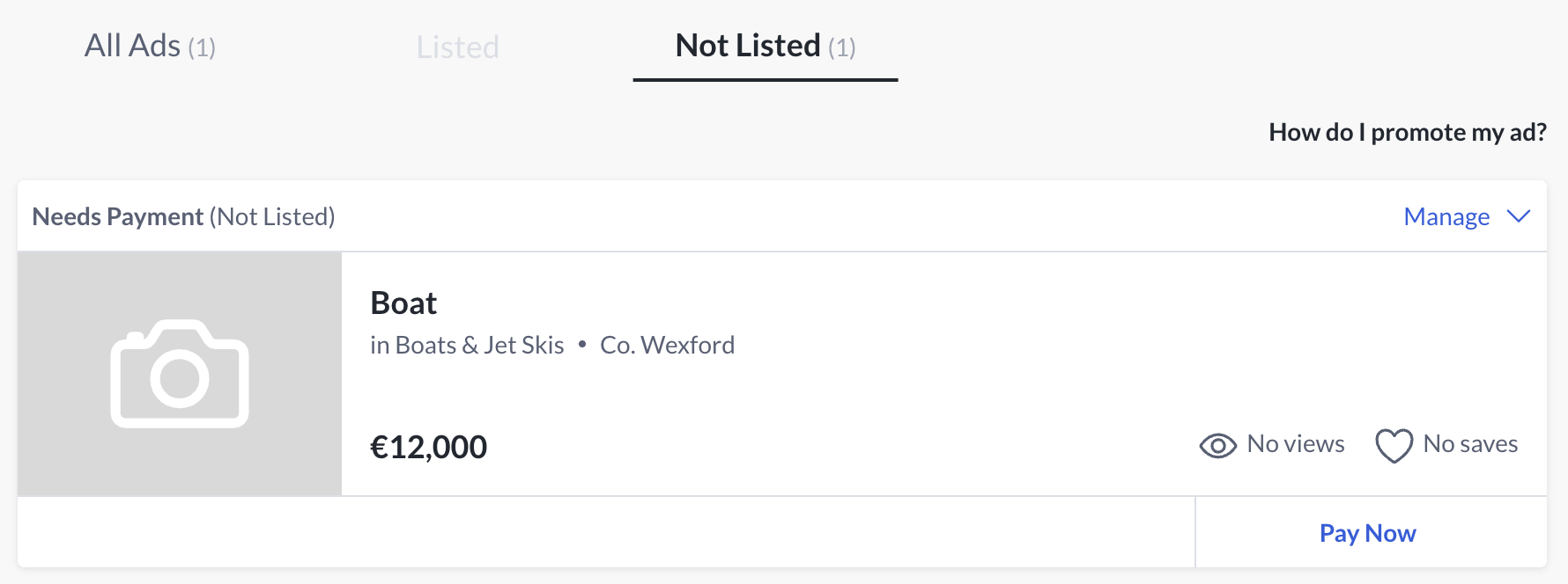 From here, you can click Pay Now if you’re happy to publish the ad, or Manage if you’d like to edit or remove it.
