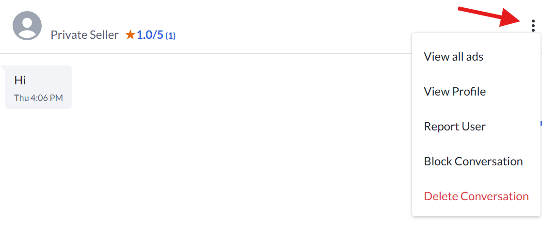 Go to your DoneDeal Message Centre and open the conversation containing the message you want to report.